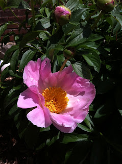 Here is the newest addition to my solar lamp collection (I lost one "flower" to the winds this winter). I got the oil lamp shade for two dollars and strung it up with some floral wire to hang it from the clothes line. Loosened the finial to make sure rain could escape. Not bad for four dollars! Evening photos to follow!